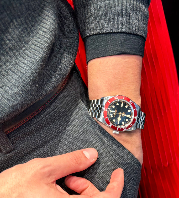 The Tudor Black Bay with its burgundy bezel is one of the most recognizable models in the brand’s lineup, representing more than 60 years of Tudor dive-watch heritage. Since the first Black Bay appeared in 2012, this deep red bezel has become a defining symbol of the collection.