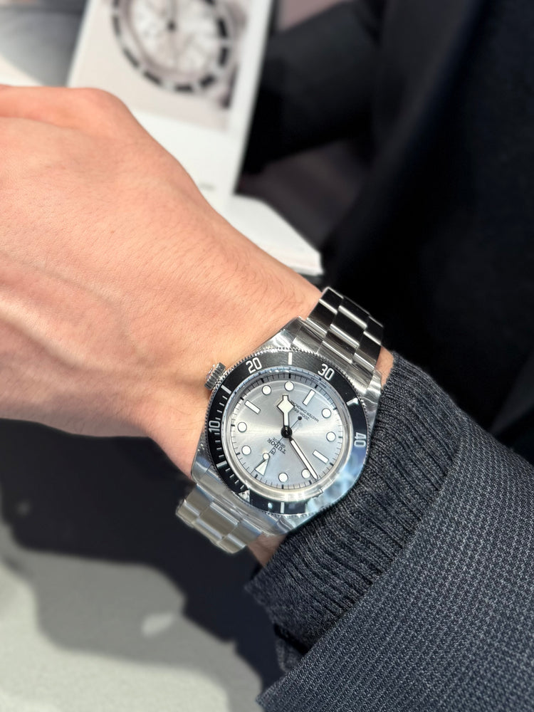 TUDOR expands the Black Bay family with the Black Bay 68, now offered in a 43 mm stainless steel case to suit larger wrists. The watch is available in two sun-brushed dial colors, silver and Tudor Blue, paired with a matte black 60-minute aluminium bezel.